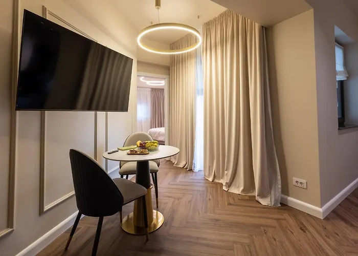 寝室1室のCalea Floreasca 77 Aparthotel 1 ブカレストはプラチナ・カジノから徒歩で25分で、シュテファン大公地下鉄駅から850メートルの場所にあります。 65m²のアパートではWiFiを利用できますし、車でお越しのお客様のために無料の専用駐車場もあります。
